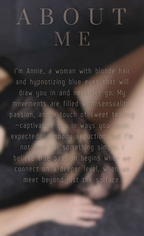 Puoi RICHIEDERE UN APPUNTAMENTO con Annie quando ti è più comodo. Tutto è impostato sul tuo fuso orario e sulle tue ore locali. Lei riceverà la tua richiesta e la accetterà se la sua agenda è libera. Riceverai una conferma via email e potrai prepararti per la tua esperienza piccante.